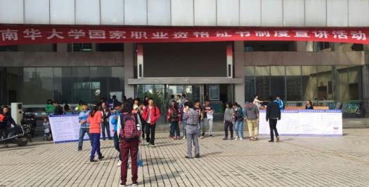 为大力推行国家职业资格证书制度,加快技能人才队伍建设,更好地服务我校学生就业和经济社会发展,贯彻执行湖南省人力资源和社会保障厅职业技能鉴定中心下发的《关于开展2015年国家职业资格证书制度宣讲活动的通知》(湘人社鉴函〔2015〕5号)文件,2015年10月11日上午继续教育学院在完美电竞·(中国)竞技平台第1教学楼前坪举办了国家职业资格证书制度宣讲活动。活动通过在校园布置宣传横幅、摆放展架、发放相关宣传资料、现场问卷调查方式进行,让学生更多的了解了国家职业资格制度。